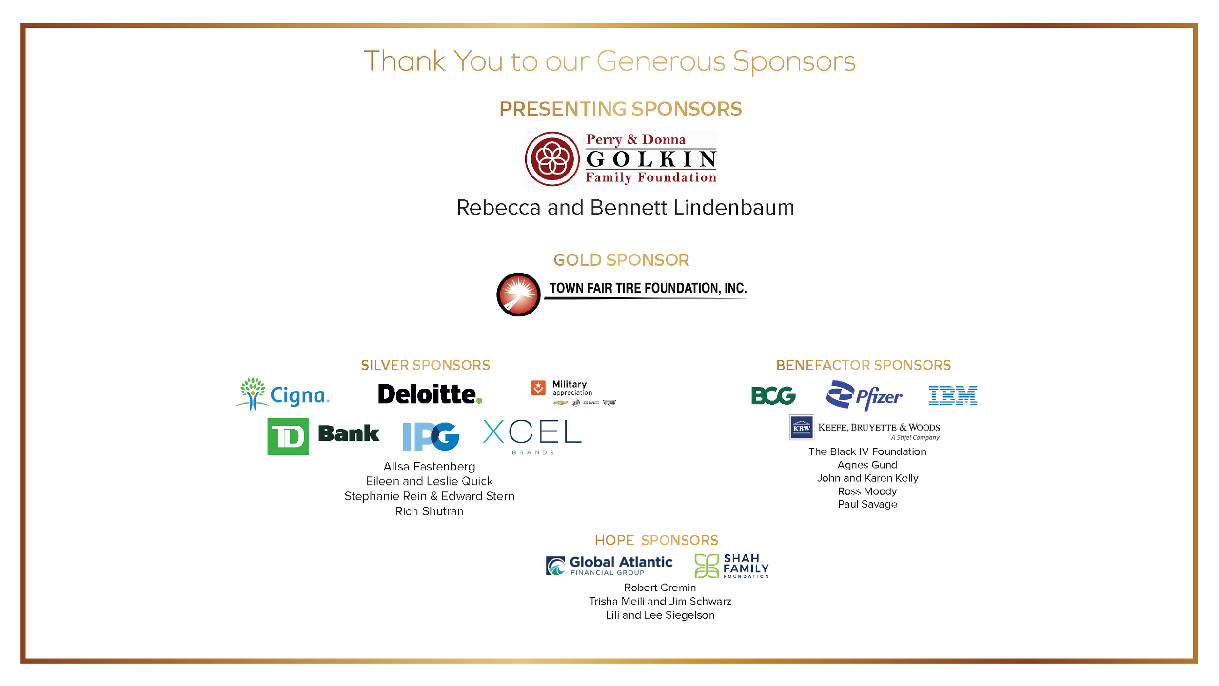 Tiki Barber, entrepreneur and former New York Giant running back, was the emcee for the evening. The gala was held at Tribeca 360° in New York City. The evening began with a passed dinner and cocktail hour followed by the main theater style program. Watch the full program below.